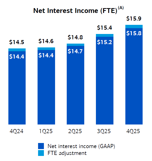Bank of America reportovala výsledky za 4Q a představila výhled čistých úrokových výnosů na 2026